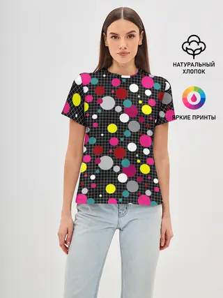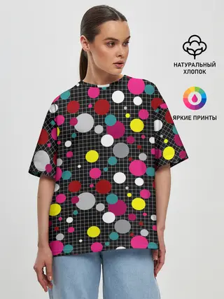Мужская футболка оверсайз / Разноцветный горох на черном