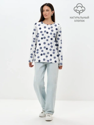 Лонгслив женский. Хлопок / Акварельный синий горох
