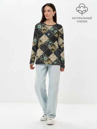 Лонгслив женский. Хлопок / Лоскутное шитье