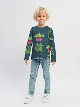 Детская базовая футболка / Цветы рябчика на темном фоне