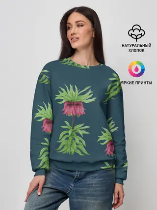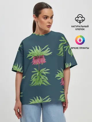 Женская футболка оверсайз / Цветы рябчика на темном фоне