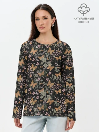 Лонгслив женский. Хлопок / Ретро узор . Бабочки