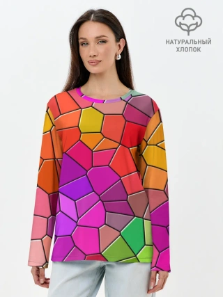 Лонгслив женский. Хлопок / Мозаика цветная