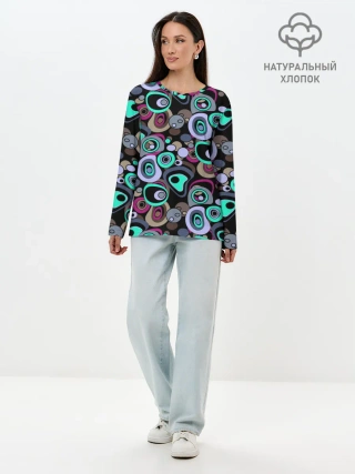 Лонгслив женский. Хлопок / Абстрактный узор ретро