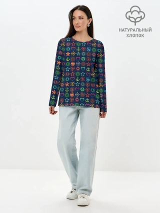 Лонгслив женский. Хлопок / Морской разноцветный узор