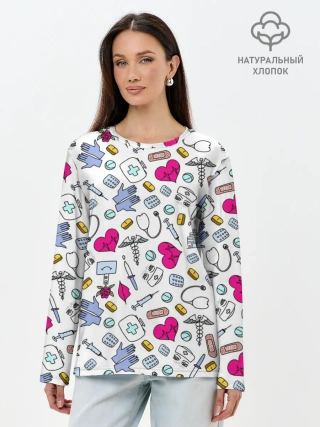 Лонгслив женский. Хлопок / Медицинский паттерн