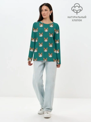 Лонгслив женский. Хлопок / Рыжий кот паттерн