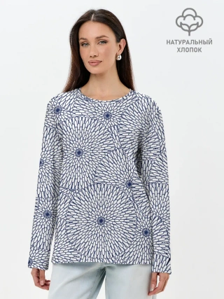 Лонгслив женский. Хлопок / БЕЛЫЕ ХРИЗАНТЕМЫ | ПАТТЕРН
