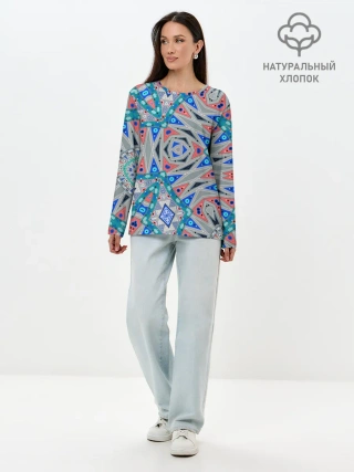 Леггинсы для девочки / Серо-синий абстрактный узор