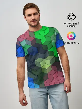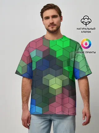 Мужская футболка оверсайз / Разноцветный геометрический уз