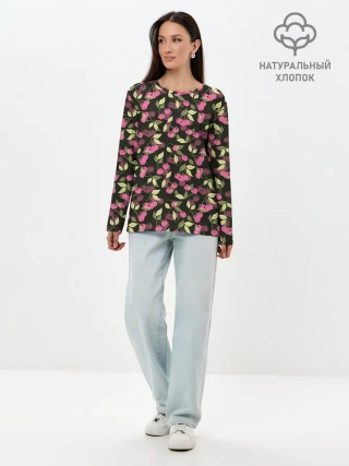 Лонгслив женский. Хлопок / Вишневый узор