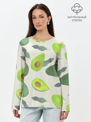 Лонгслив женский. Хлопок / Авокадо - фруктовый паттерн