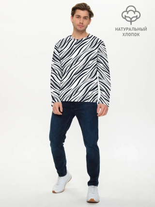 Мужской лонгслив базовый / Черно-белый полосатый тигровый
