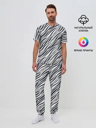 Мужская пижама с брюками / Черно-белый полосатый тигровый