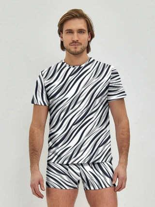 Мужские трусы с футболкой / Черно-белый полосатый тигровый