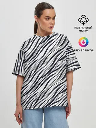 Женская футболка оверсайз / Черно-белый полосатый тигровый
