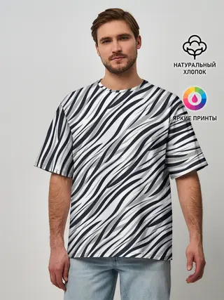 Мужская футболка оверсайз / Черно-белый полосатый тигровый