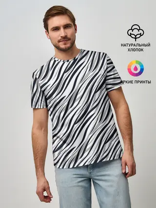 Мужская базовая футболка / Черно-белый полосатый тигровый