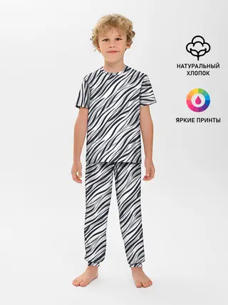 Детская пижама с брюками / Черно-белый полосатый тигровый
