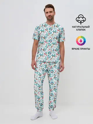 Мужская пижама с брюками / Морозная Зимняя Свежесть