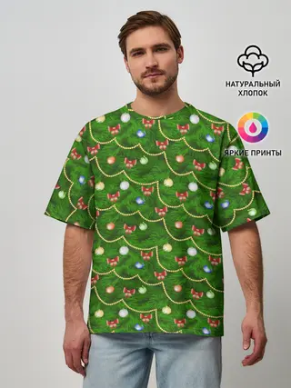 Мужская футболка оверсайз / Новогодняя Ёлка с Игрушками