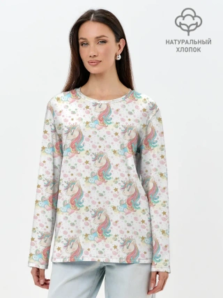 Лонгслив женский. Хлопок / Единороги паттерном
