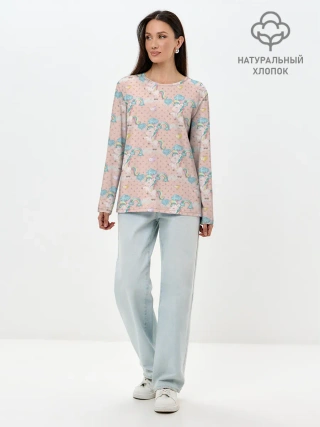 Лонгслив женский. Хлопок / Единороги из паттерна