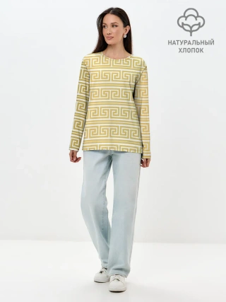 Лонгслив женский. Хлопок / Орнамент древней Греции