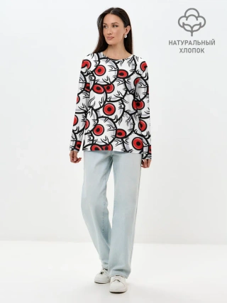 Лонгслив женский. Хлопок / HALLOWEEN EYES / ХЕЛЛОУИН ГЛАЗА