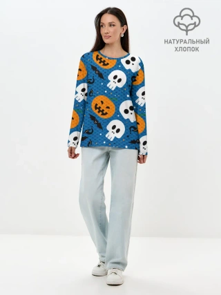 Лонгслив женский. Хлопок / ЧЕРЕПА И ТЫКВЫ | HALLOWEEN