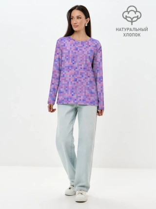 Лонгслив женский. Хлопок / Сиреневая пиксельная абстракция