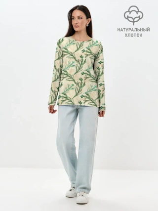 Лонгслив женский. Хлопок / Ель новогодняя