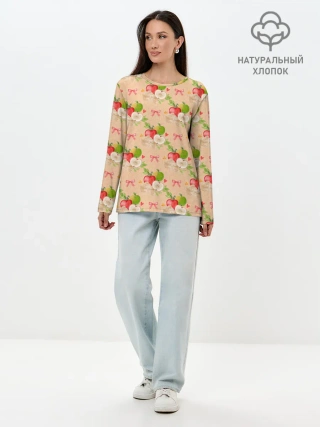 Лонгслив женский. Хлопок / Яблоки паттерн