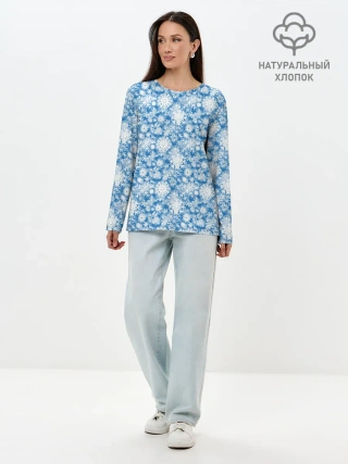 Лонгслив женский. Хлопок / Узоры Снежных Хлопьев