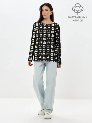 Лонгслив женский. Хлопок / Прикольные смайлы Хэллоуин 2 / Halloween 2
