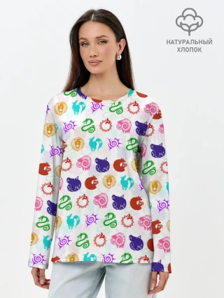 Лонгслив женский. Хлопок / 7 СМЕРТНЫХ ГРЕХОВ ЦВЕТНОЙ ПАТТЕРН СИМВОЛЫ