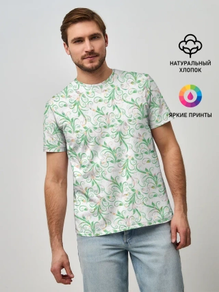 Мужская футболка оверсайз / Весенние узоры из листьев