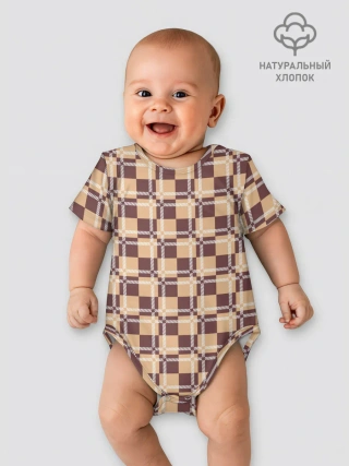 Детская пижама с шортами / Коричневые и бежевые квадраты с линями