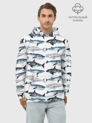 Худи мужской база хлопок / принт с китами