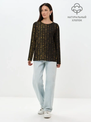 Лонгслив женский. Хлопок / ЕГИПЕТСКИЕ ИЕРОГЛИФЫ ЗОЛОТОМ