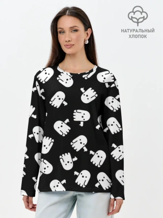 Лонгслив женский. Хлопок / ПРИВИДЕНИЯ УЗОР / HALLOWEEN