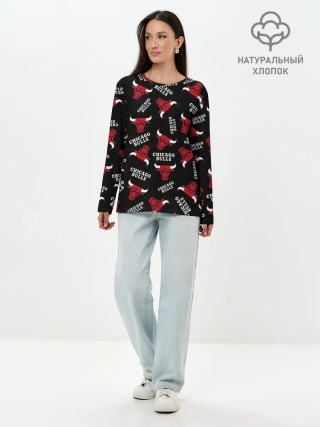 Лонгслив женский. Хлопок / CHICAGO BULLS БЫКИ УЗОР