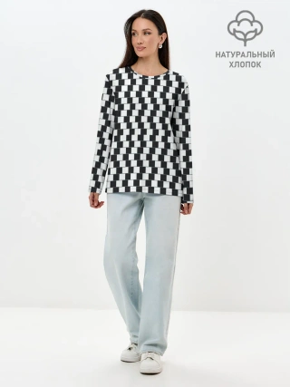 Лонгслив женский. Хлопок / Шахматная Иллюзия Искажения