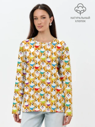 Лонгслив женский. Хлопок / Вельш-Корги Пемброк