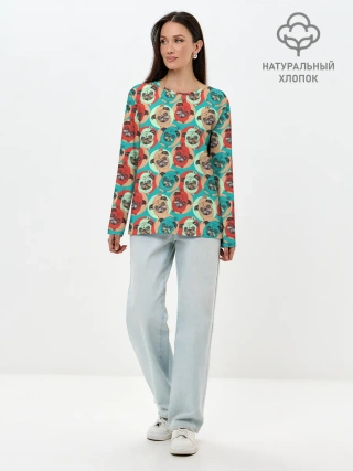 Лонгслив женский. Хлопок / Прикольные Мопсы