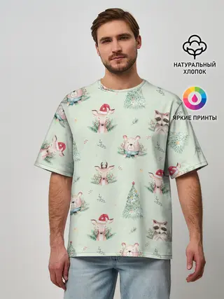 Мужская футболка оверсайз / Олени, медведи и еноты