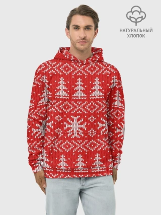 Худи мужской база хлопок / Новогодний узор, 2022