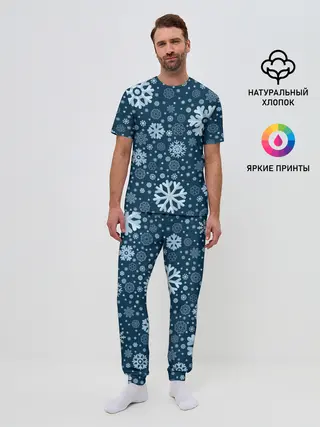 Мужская пижама с брюками / Новогодние снежинки, новый год