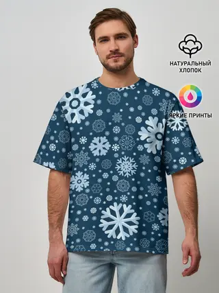 Мужская футболка оверсайз / Новогодние снежинки, новый год