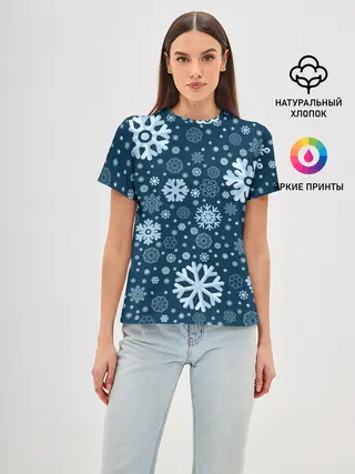 Женская базовая футболка / Новогодние снежинки, новый год